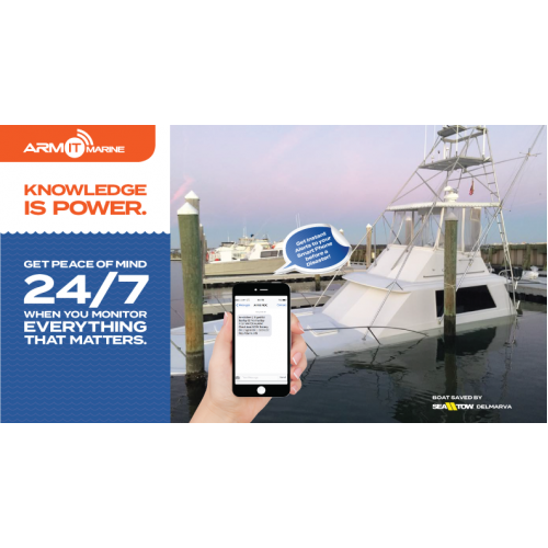 The ARMIT BilgeMAX* | wireless boat bilge monitoring system provides 24/7 monitoring of water levels. ArmIt IoT-Monitoring™ sends you an instant text message and eMail alerts the instant water levels rise. BilgeMAX helps you prevent a small problem from becoming a disaster.